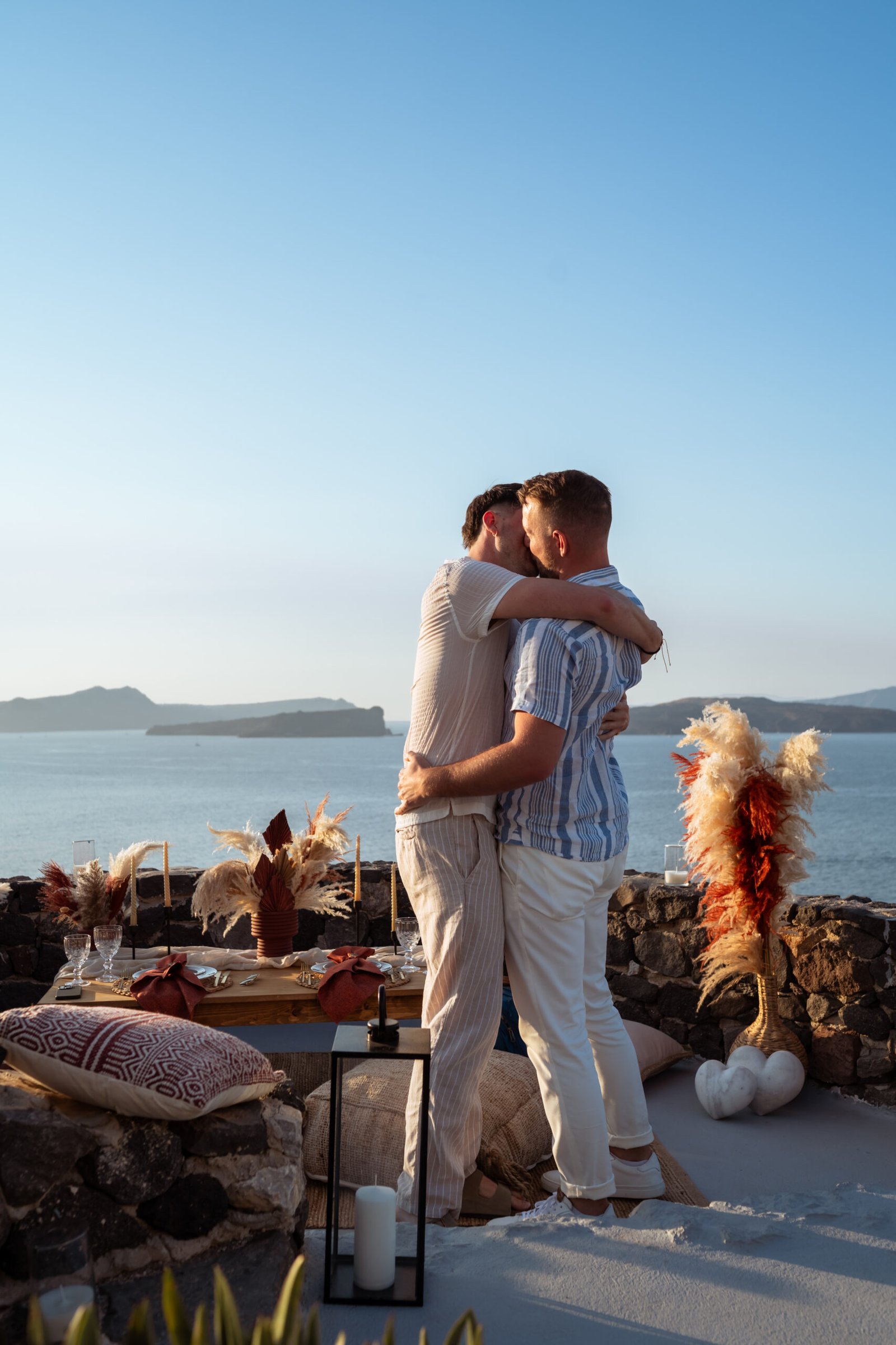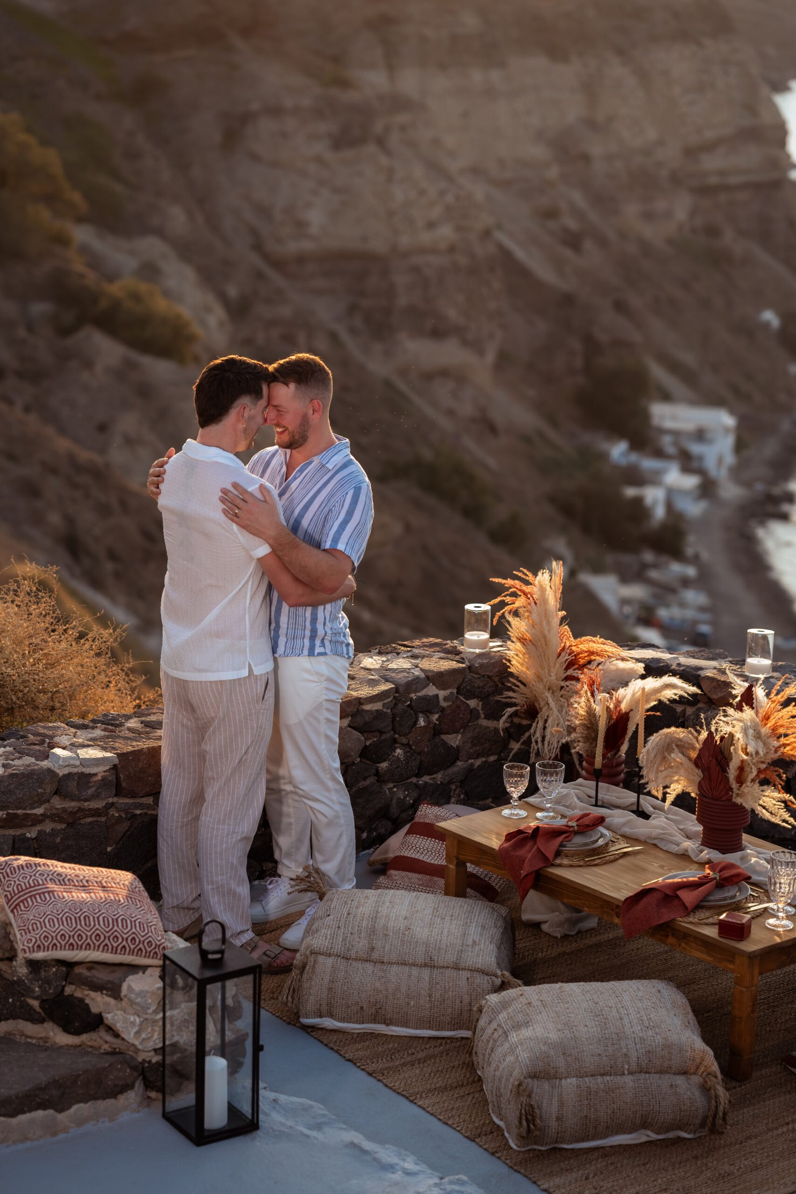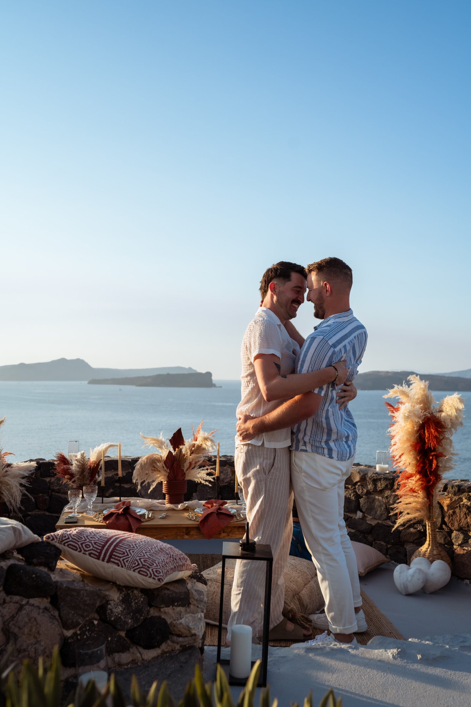 Romantic Boho Sunset LGBTQ Proposal in Santorini