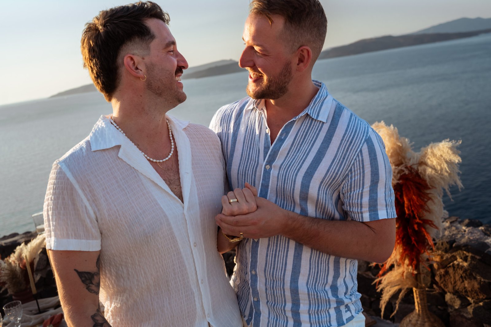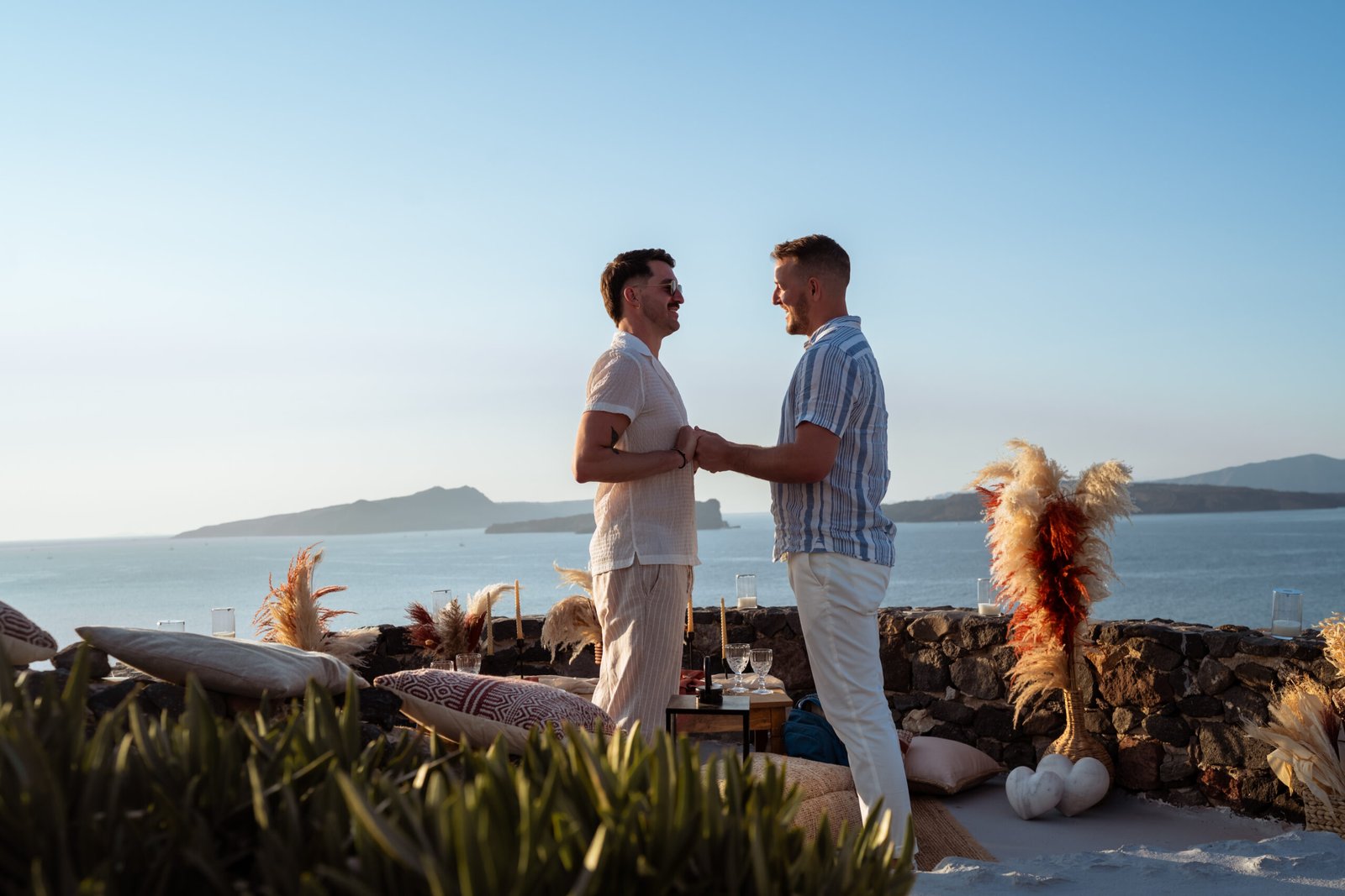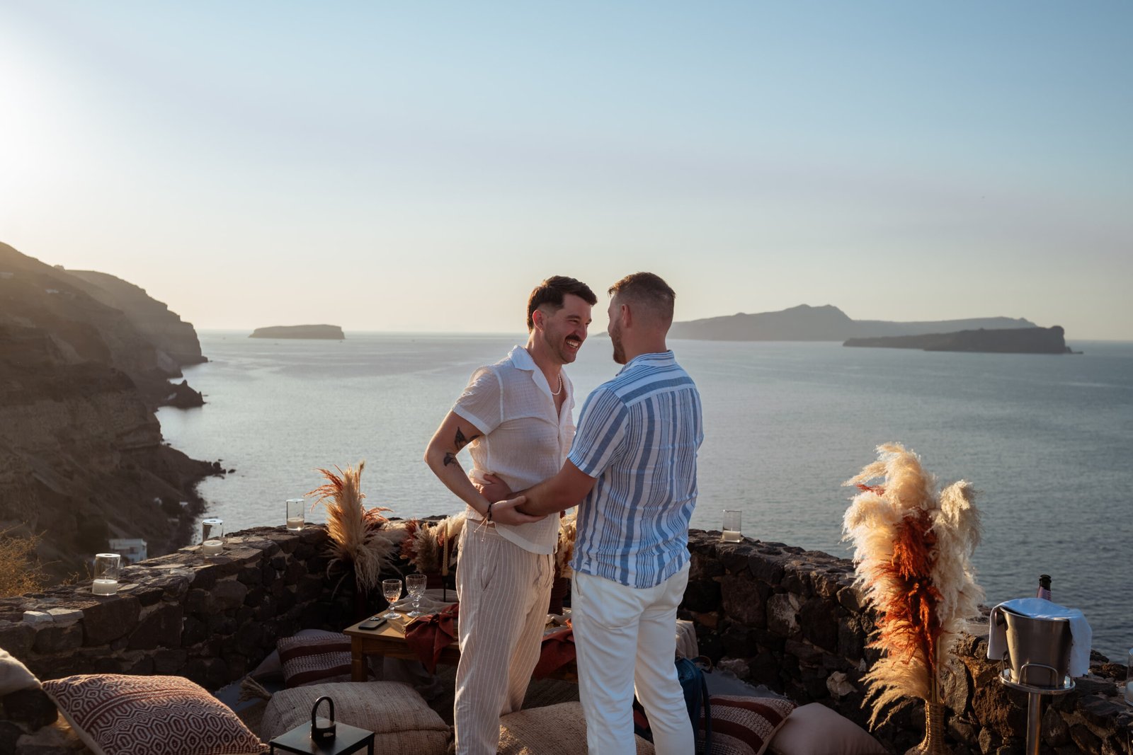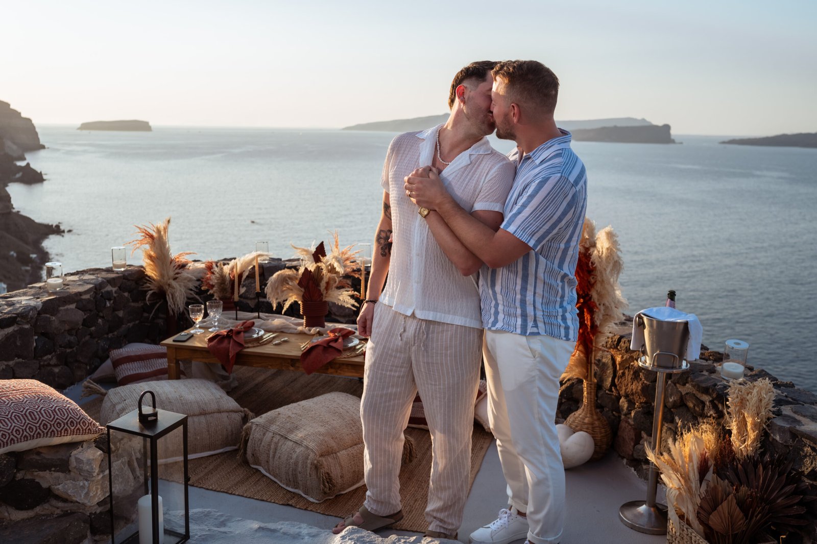 Romantic Boho Sunset LGBTQ Proposal in Santorini