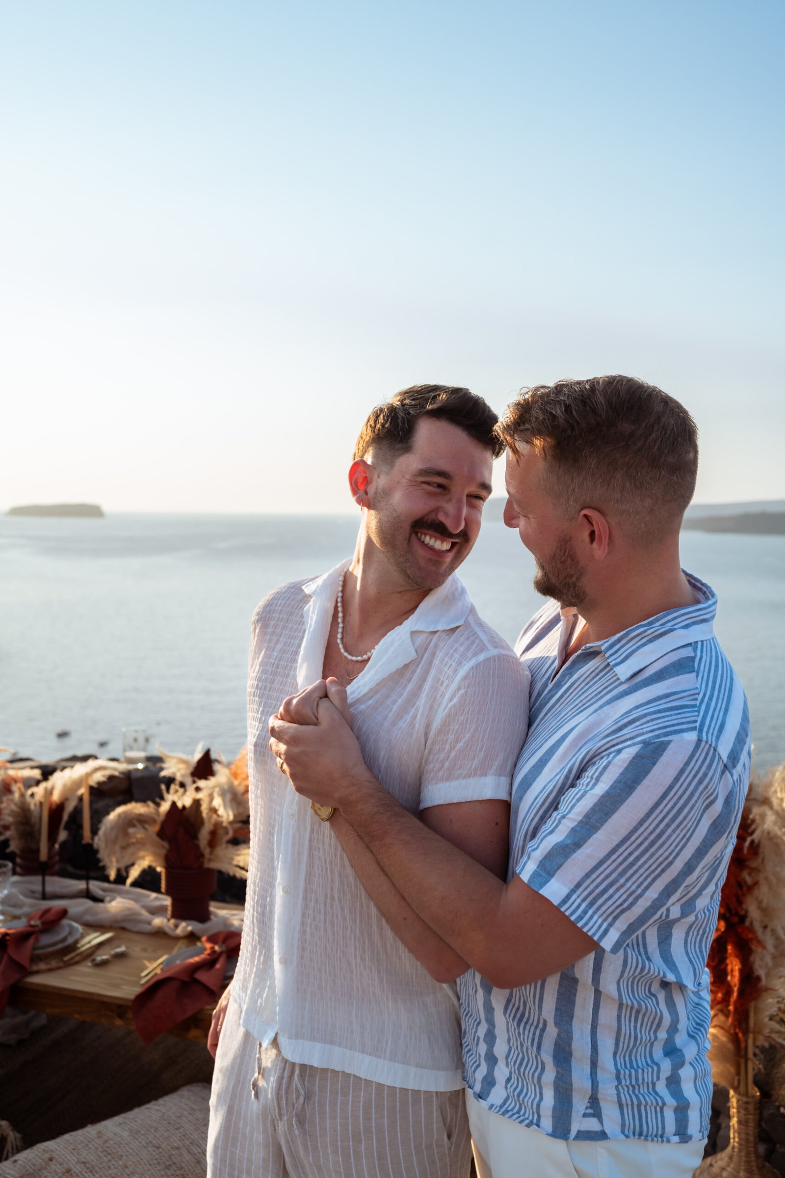 Santorini is one of the most romantic places in the world to propose, and for James and Matt, traveling from Australia, it became the setting for one of the most unforgettable moments of their lives.