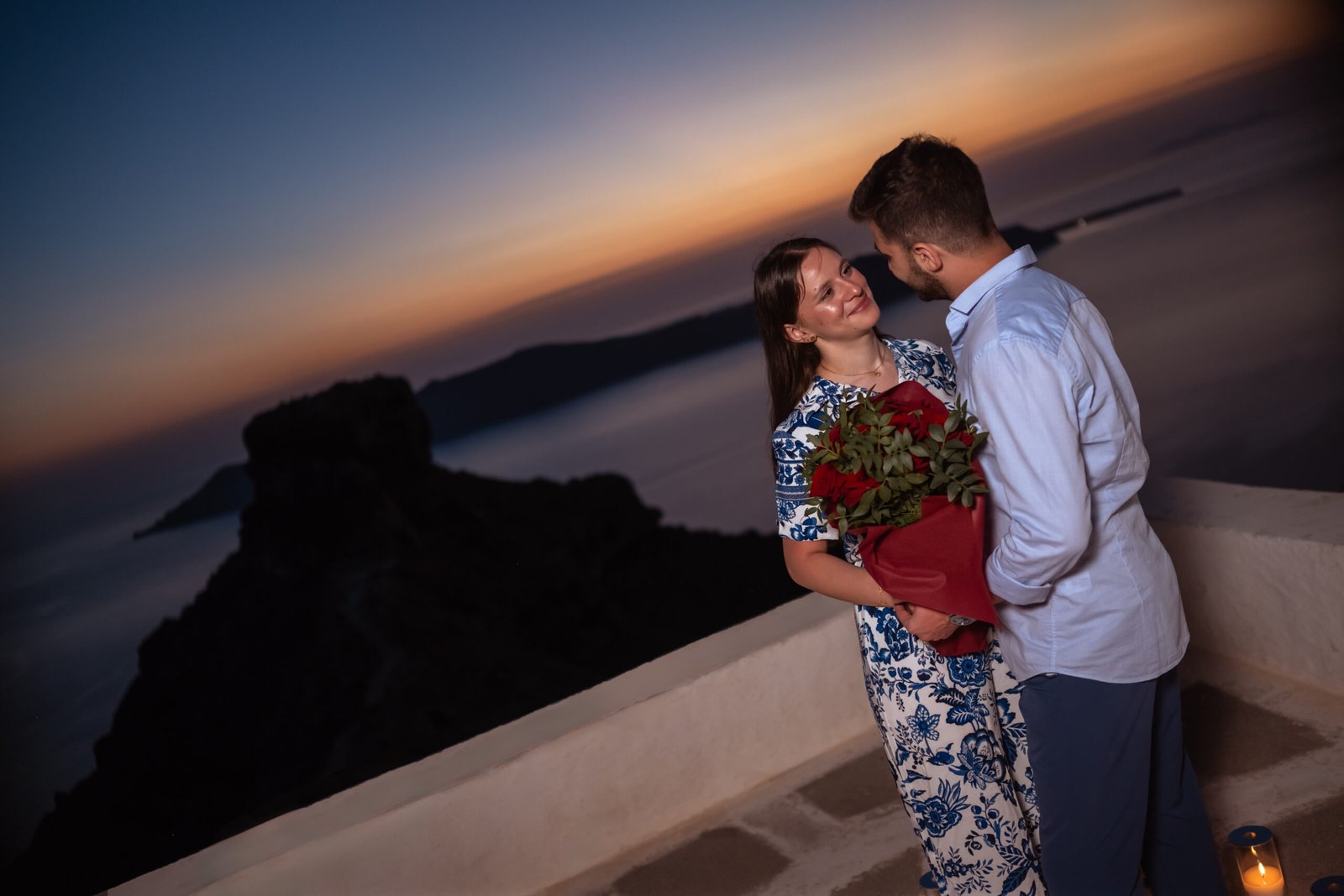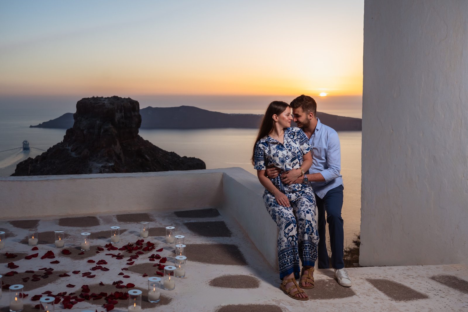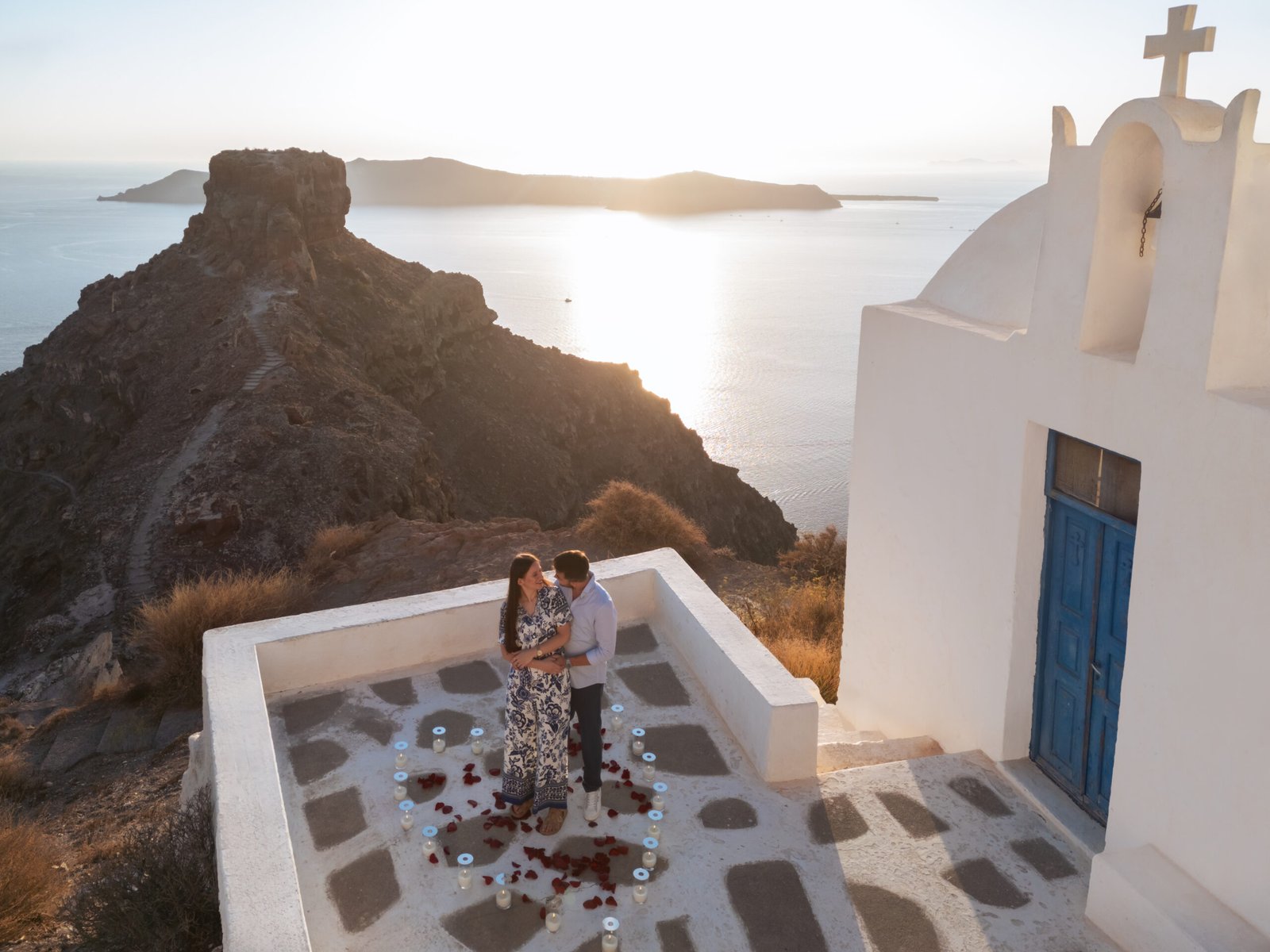 A Sunset Proposal at the White Chapel in Imerovigli