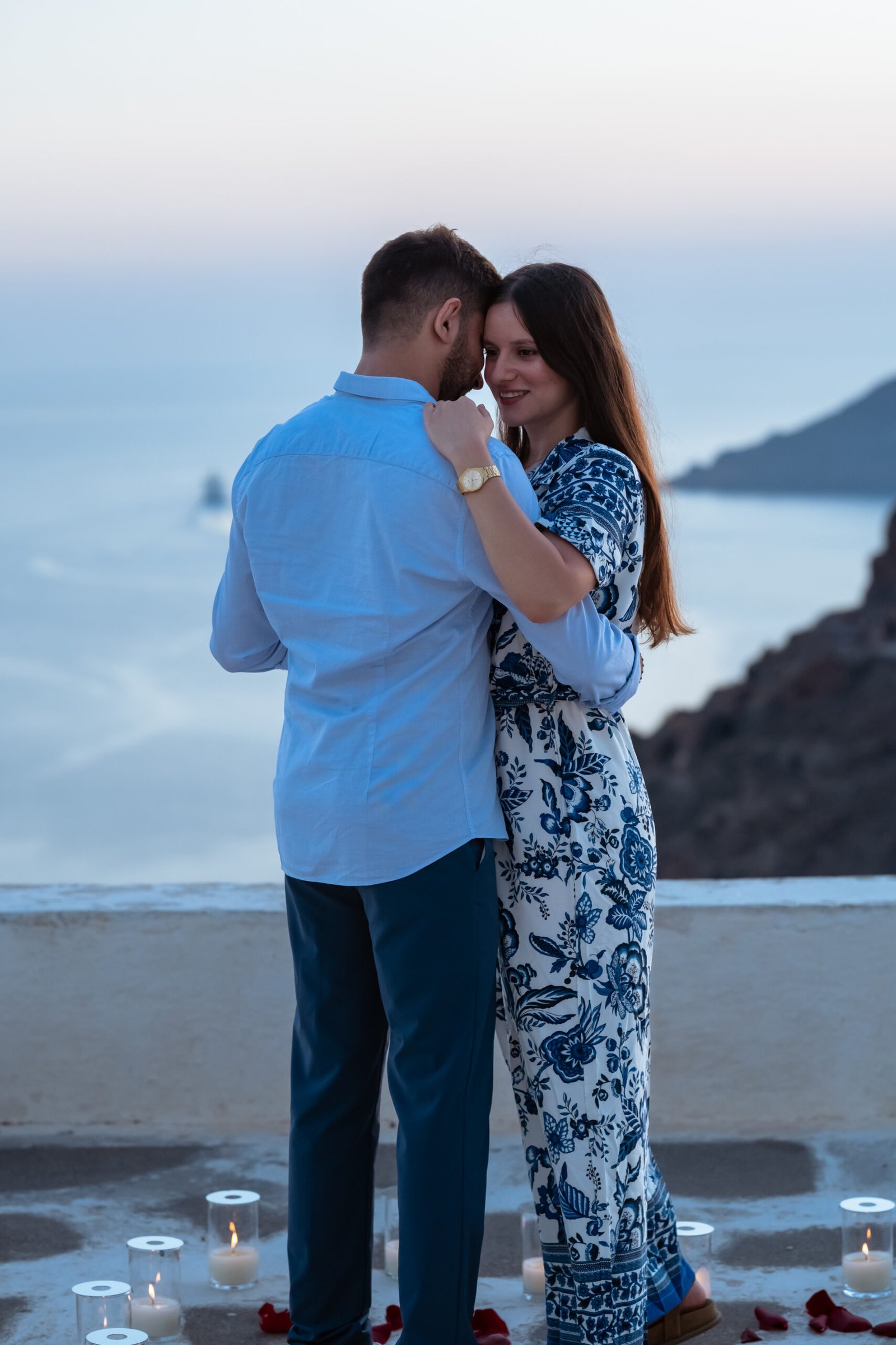 If you’re dreaming of a romantic sunset proposal in Santorini, our team will help you create a beautiful, natural moment — and capture it forever through photos and video.